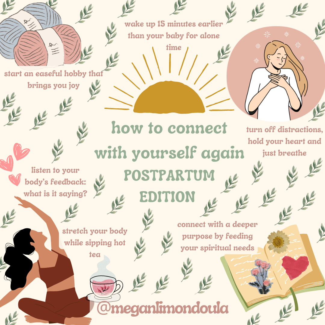 Postpartum is a time to meet your baby after carrying them for many months but it also is a time to meet yourself. I love sharing tips for my momma clients to learn more about connecting with themselves in this new season. Give yourself time to reconnect and discover yourself in this new season. Often times we put so much pressure on ourselves that we need to know all the things - “Why am I reacting like this? What is causing me anxiety? Why am I acting different?” What if you took the time to learn about yourself and see what you find? As always, give yourself so much grace, time and love.