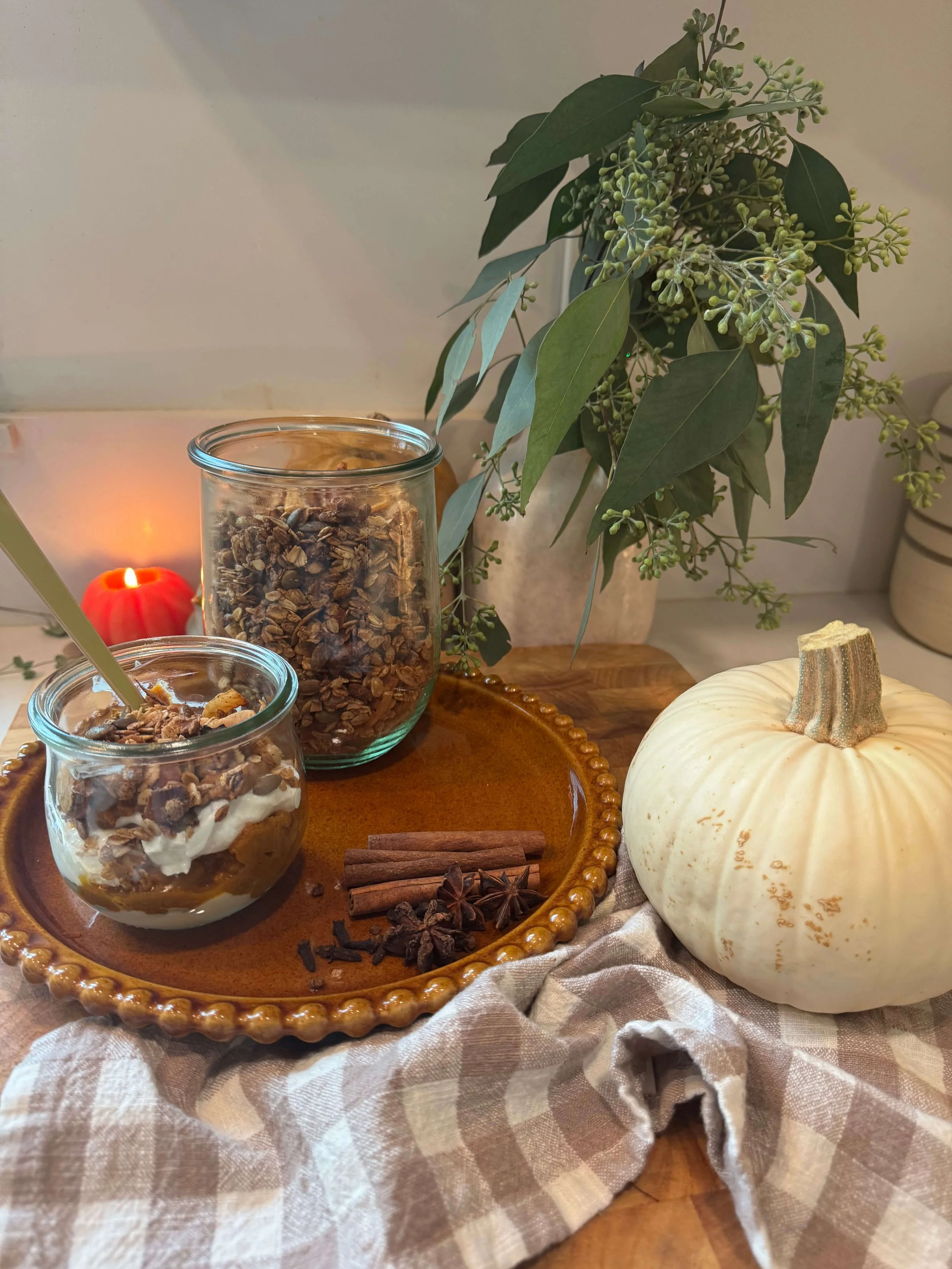 This Pumpkin Pie Granola was created with new mothers in mind — warm, grounding, and deeply nourishing. It’s a recipe that supports digestion, boosts energy, and keeps blood sugar steady — all essential for postpartum recovery.