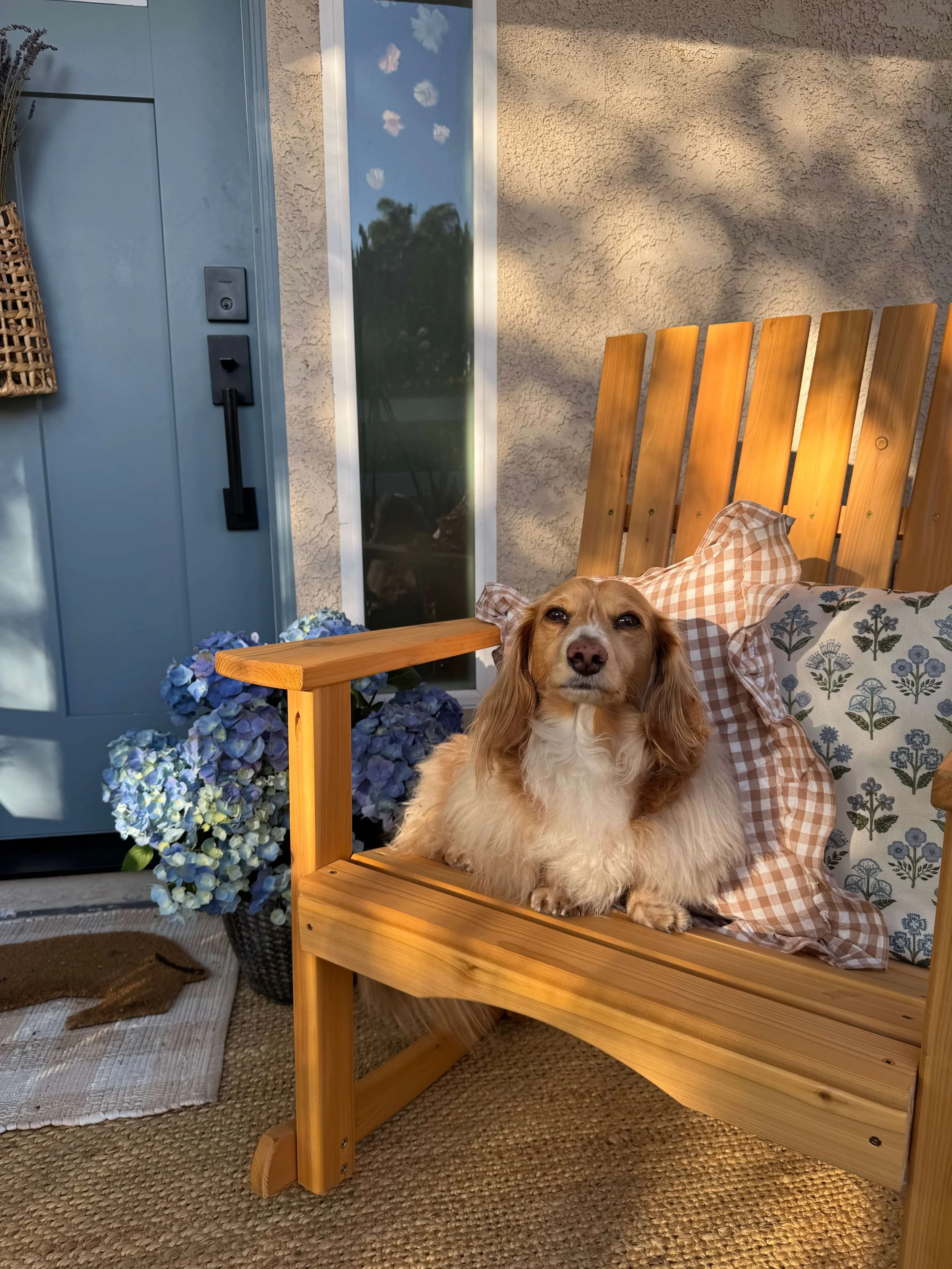 It has been a very blissful time to create this outdoor space for the growth of our own family. I found connecting with The Porch Swing Company from start to finish was so special. While our own porch overhang was a little short to house a porch swing, we decided our daydream still needed to come to life with these gorgeous wooden rocking chairs. We simply placed our order in the beginning of the month and they arrived nothing over 10 days later after being handcrafted by their skilled wood workers. What we were looking in rocking chairs included: materials that would last a very long time and easy to assemble. I really love that these rocking chairs are crafted from premium Western Red Cedar in this Adirondack-inspired style that combines expert craftsmanship and exceptional comfort. I selected to not have cup holders crafted in our rocking chairs since we are more of a mug of coffee on the arm of the chair kind of people but easily can see how that addition would be brilliant with little ones! All of their beautiful chairs are finished with a soy-based stain, made in the USA the most simple to assemble. I really love looking at how much work and skill was put into these chairs and that has deepen my appreciation for this space.