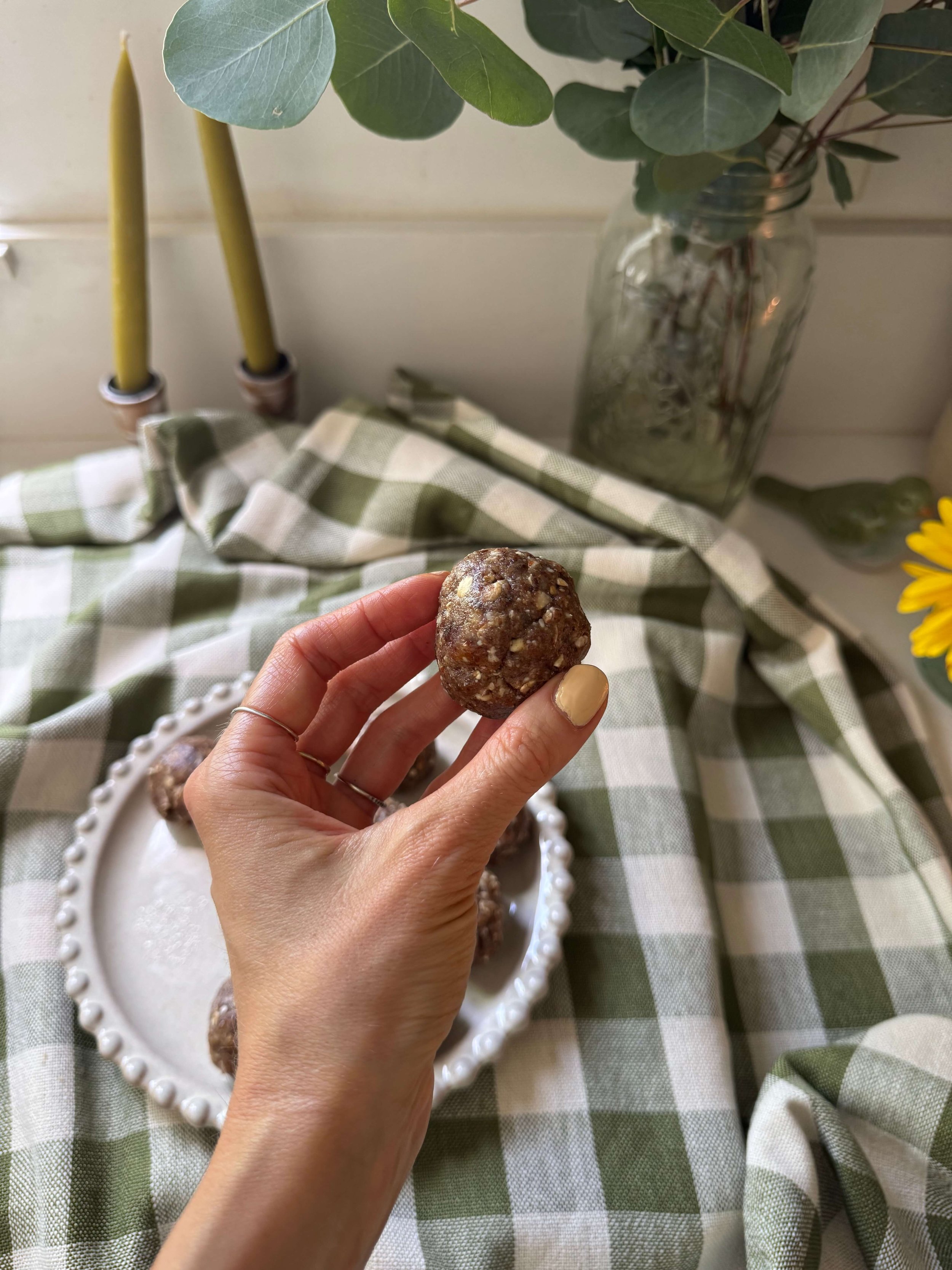 🍵 Afternoon Snack: Almond Butter Date Bites + Sesame Tea